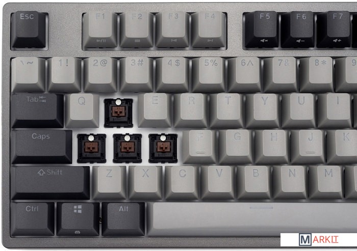 КЛАВИАТУРА БЕЗ КИРИЛЛИЦЫТип: линейныйСила нажатия: 45 грамм (средние)Длина пути: 3.7 мм (1.9 мм до срабатывания)Настраиваемая белая подсветка - Поддерживает 11 режимов, регулировку яркости, скорости и направления анимации.Клавиатура поддерживает сочетания клавиш для регулировки громкости и управления музыкой. Также имеется возможность отключить кнопку Windows.Два кабеля в комплекте - Вы можете использовать как USB Type-C, так и старый добрый USB Type-A.Durgod Zeus Engine позволяет создавать макросы. Можно создать свои мультимедиа, функциональные макросы и многое другое. ПО не поддерживается на Mac OS.Канавки для укладки кабеля - Расположены с обратной стороны клавиатуры и позволяют выводить кабель в трёх направлениях — слева, справа и посередине.Двойные регулируемые ножки предоставляют целых три варианта угла наклона клавиатуры для более комфортной печати, а их прорезиненное дно не даст клавиатуре сдвинуться с места.Позволяет нажимать одновременно неограниченное количество клавиш. Для печати идеально подойдет как 6KRO, так и NKRO, независимо от вашей скорости. Для игр NKRO будет плюсом и неважно, нажимаете ли вы больше 6 кнопок или нет, поскольку, играя в любую игру, вы можете случайно нажать пару лишних клавиш и из-за этого клавиатура может не среагировать на нажатие, которые вы хотели совершить изначально. Осторожно, старые BIOS-ы могут не реагировать на клавиатуру из-за NKRO.
