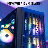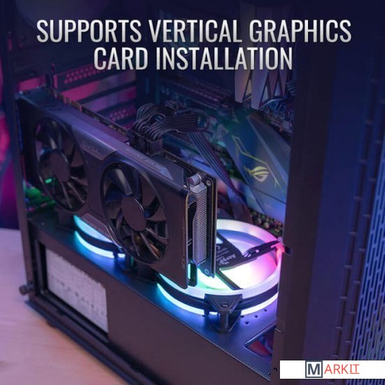 Этот высокопроизводительный корпус формата Mid-Tower создан с учетом вентиляции и предоставляет качественный воздушный поток, пока вы наслаждаетесь подсветкой вентиляторов на передней панели. Боковая панель из закалённого стекла позволяет рассмотреть все компоненты системы. Два дополнительных слота расширения дают возможность установки видеокарты в вертикальном положении.Вентиляционные отверстия на передней панели увеличивают поток воздуха и улучшают вентиляцию, обеспечивая превосходное охлаждениеБоковая панель из закаленного стекла для демонстрации внутренней части системыДва дополнительных слота расширения дают возможность установки видеокарты в вертикальном положенииКрепления для вентиляторов на отсеке для блока питания позволяют установить до 2 х120 мм вентиляторов, которые обеспечивают дополнительное охлаждение видеокартыПоддерживает жидкостное охлаждение в передней, верхней и задней части корпусаМаксимальная высота системы охлаждения процессора – 160 ммПоддержка видеокарт премиум-класса длиной до 343 мм (без переднего радиатора)