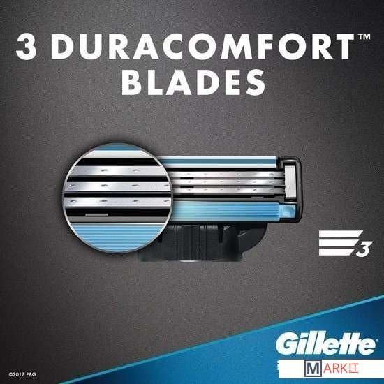 Кассеты Gillette Mach3 - это бритвенная система, оснащенная тремя лезвиями с покрытием DLC и усовершенствованной полоской-индикатором, которая обладает одновременно смазывающим эффектом и сигнализатором о смене картриджа для достижения оптимального эффекта.Три лезвия размещены на разных уровнях, что обеспечивает максимально чистое бритье всего одним движением и снижает тем самым раздражение, ведь необходимости брить снова становится меньше.